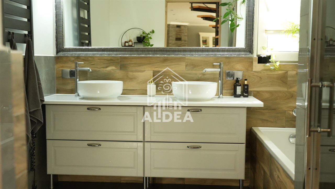 | Wyposażenie łazienki | lustro, natrysk, natrysk z hydromasażem, umywalka, wanna, WC |