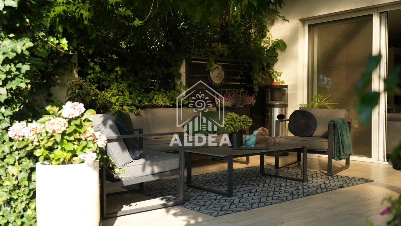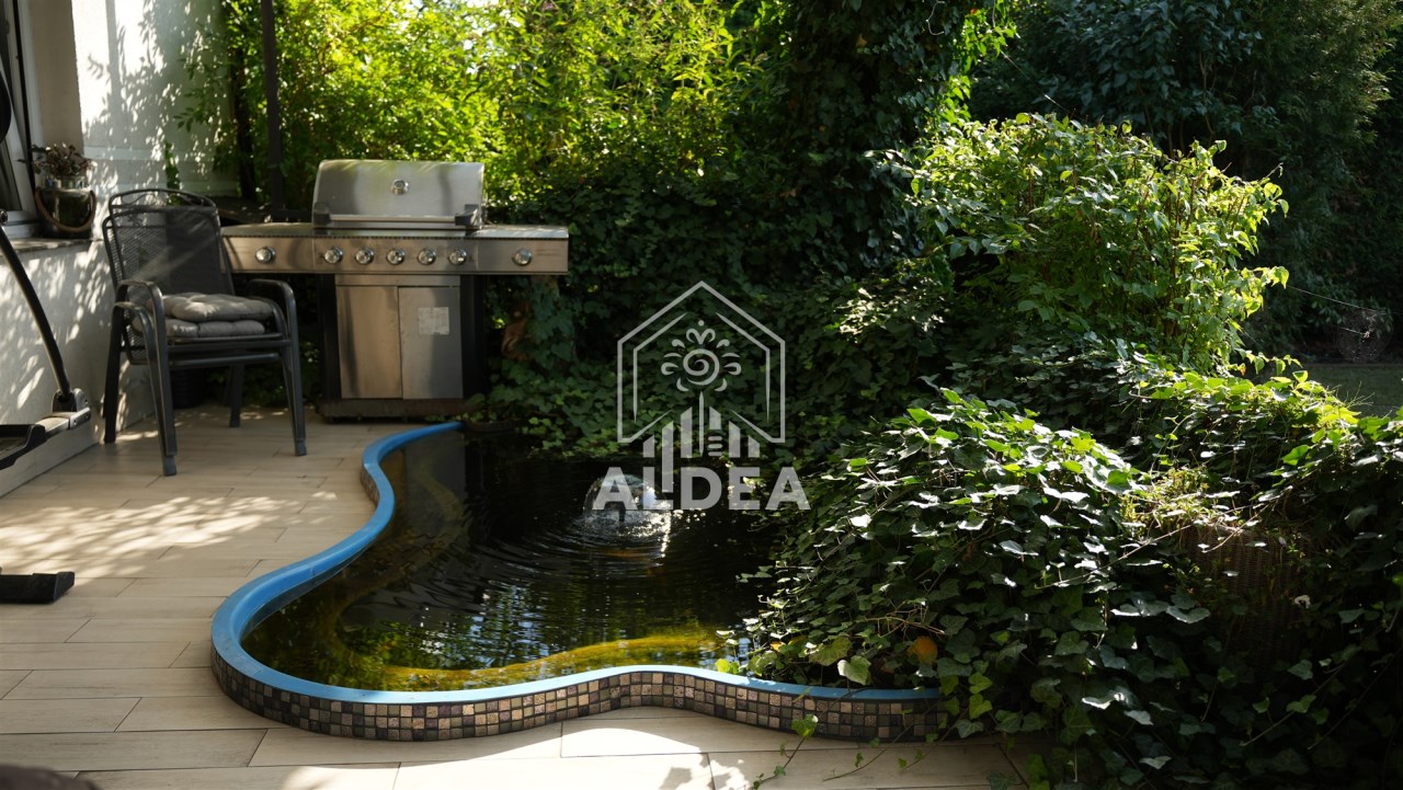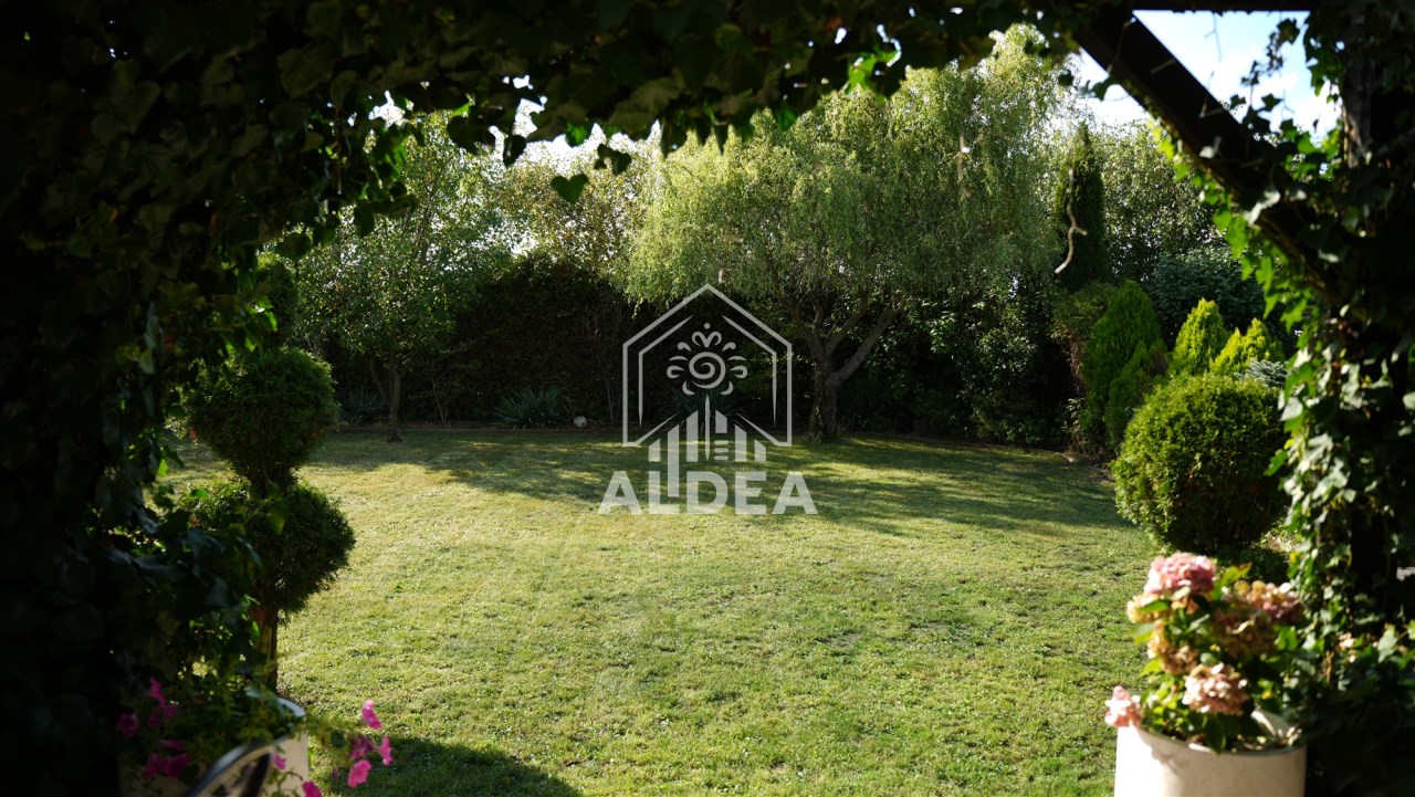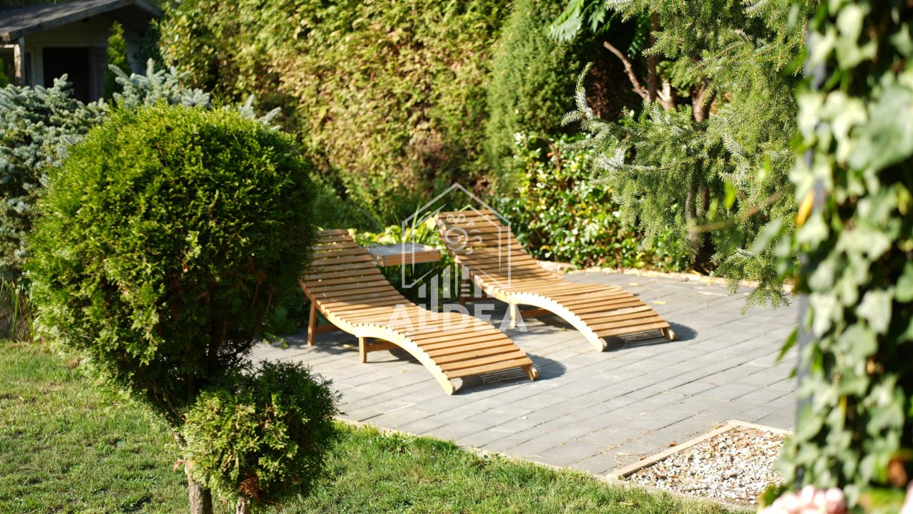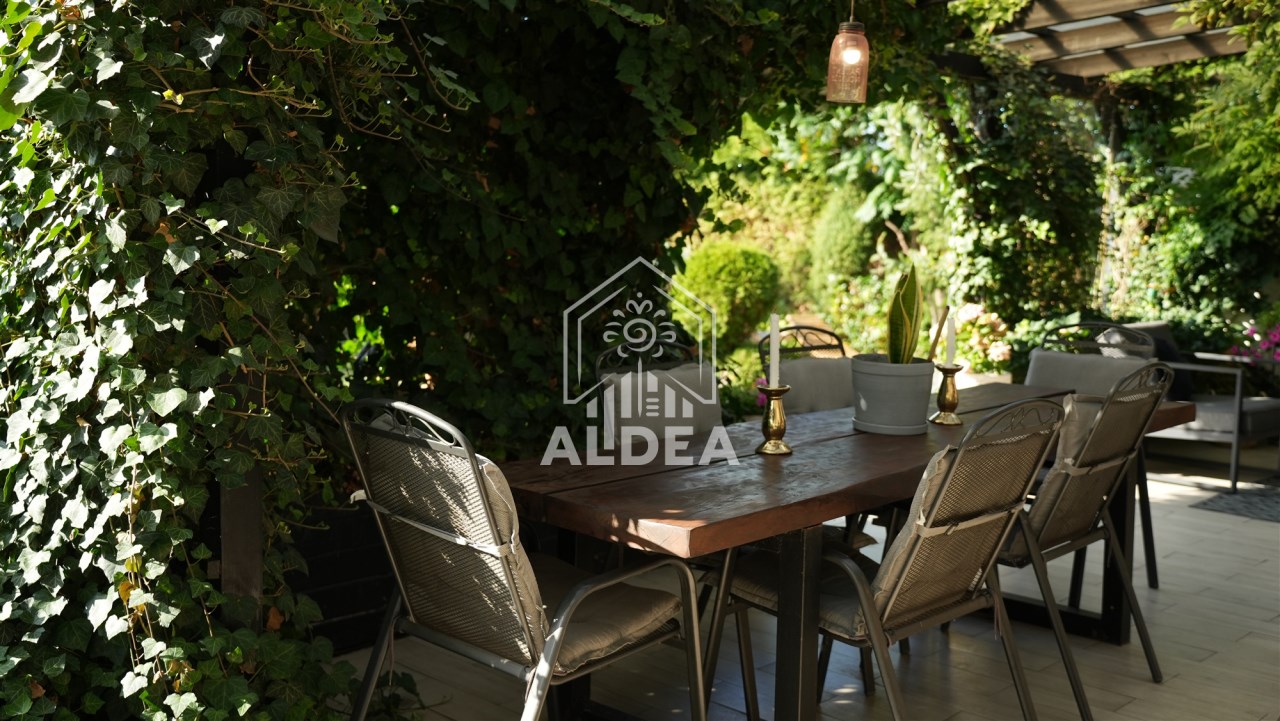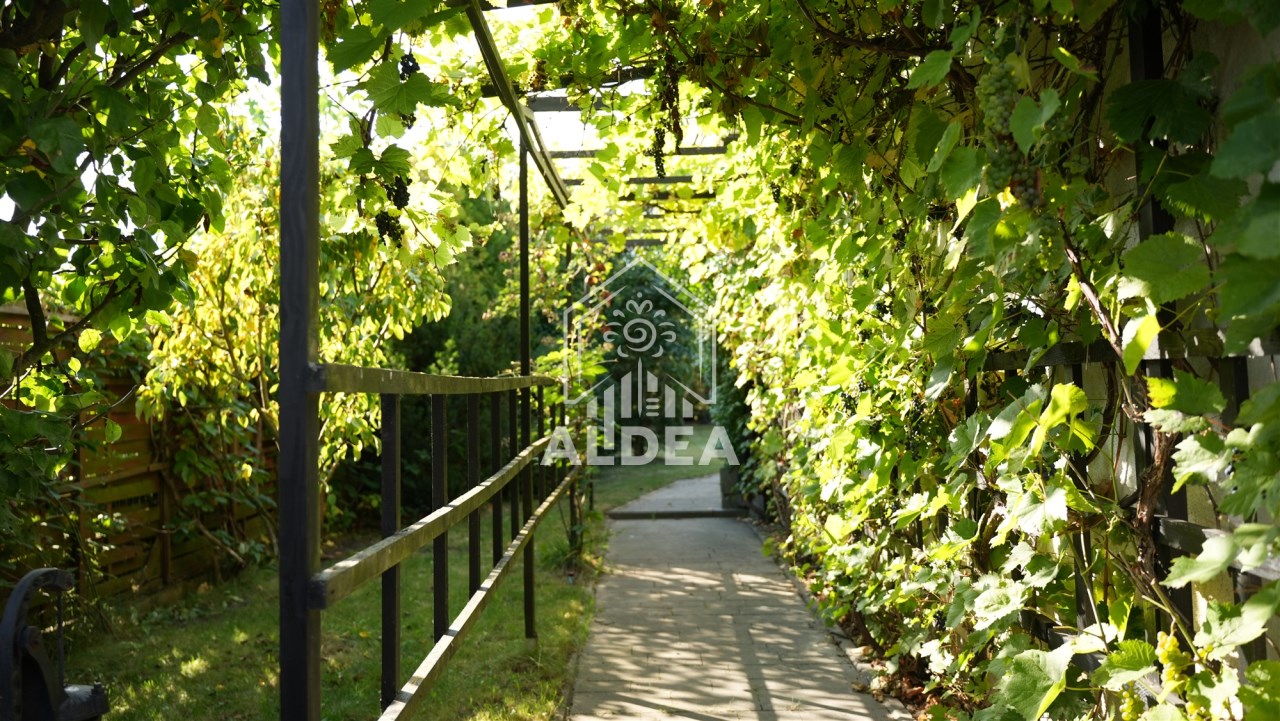 Teren wokół domu to pięknie zaaranżowany ogród z systemem nawadniającym.