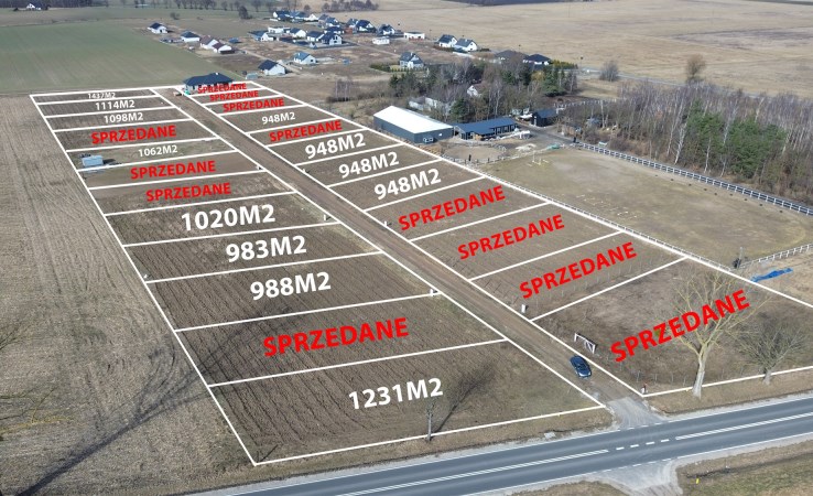 Stan terenu: Działka płaska, wyrównana, bez zakrzaczeń i drzew – nie wymaga dodatkowych nakładów na karczowanie czy niwelację.