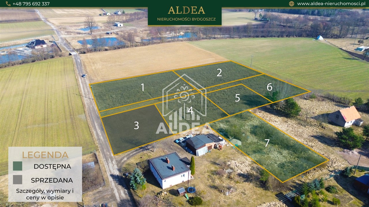 Poniżej przedstawiamy zestawienie aktualnie dostępnych parceli. Numery odpowiadają oznaczeniom na załączonej mapie: